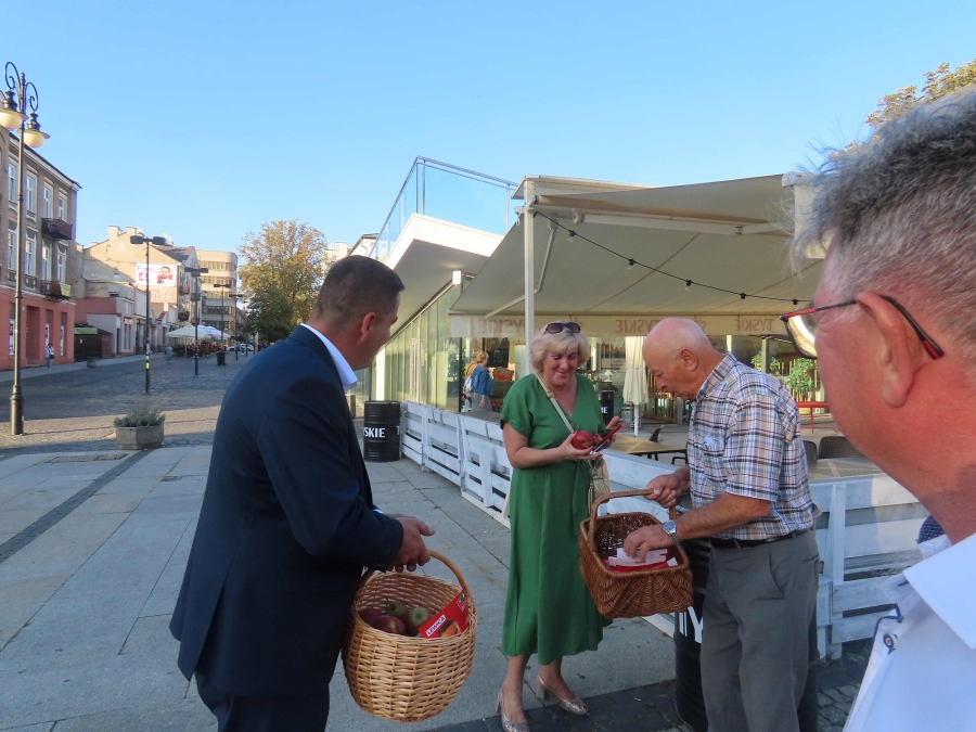 Z  tej  okazji dzisiaj  przeprowadziliśmy uliczną    akcję , mającą  na  celu  popularyzowanie  jabłek, jako najzdrowszego  owocu  świata, którego 45%  produkcji    w Polsce  pochodzi z  naszego  regionu .  Była to  dobra okazja  do  spotkań  z  mieszkańcami  i do  rozdawania  ulotek  przez  kandydatki  i  kandydatów do polskiego parlamentu.