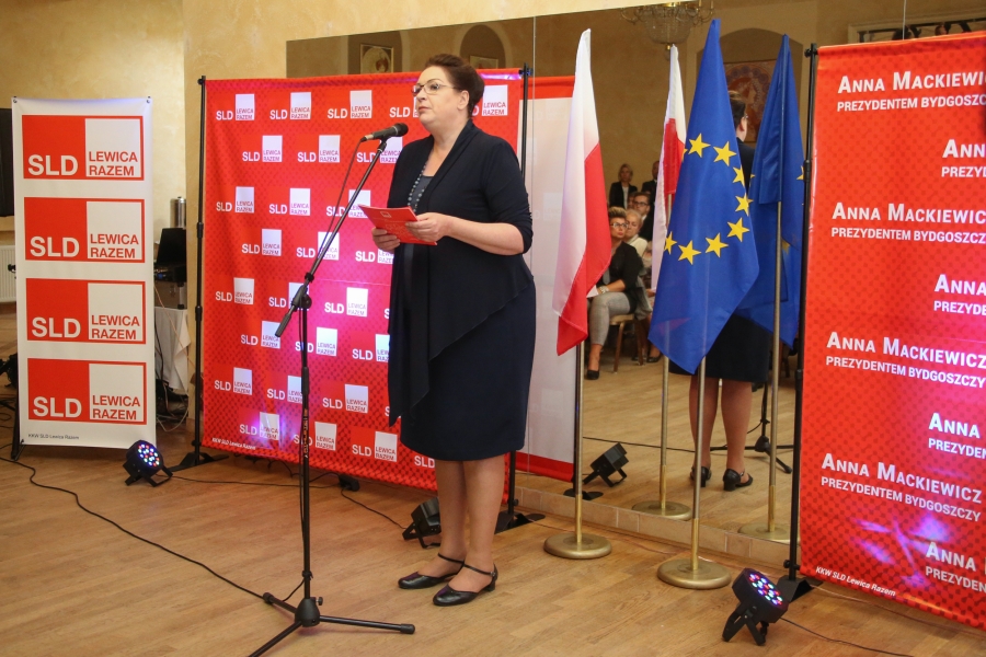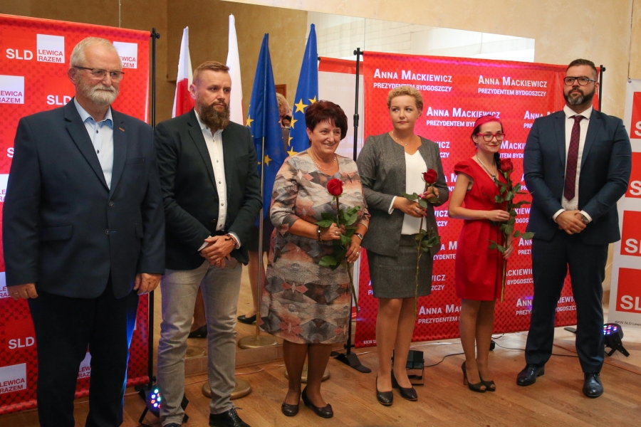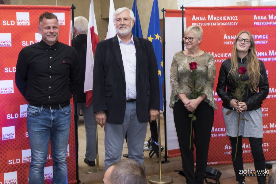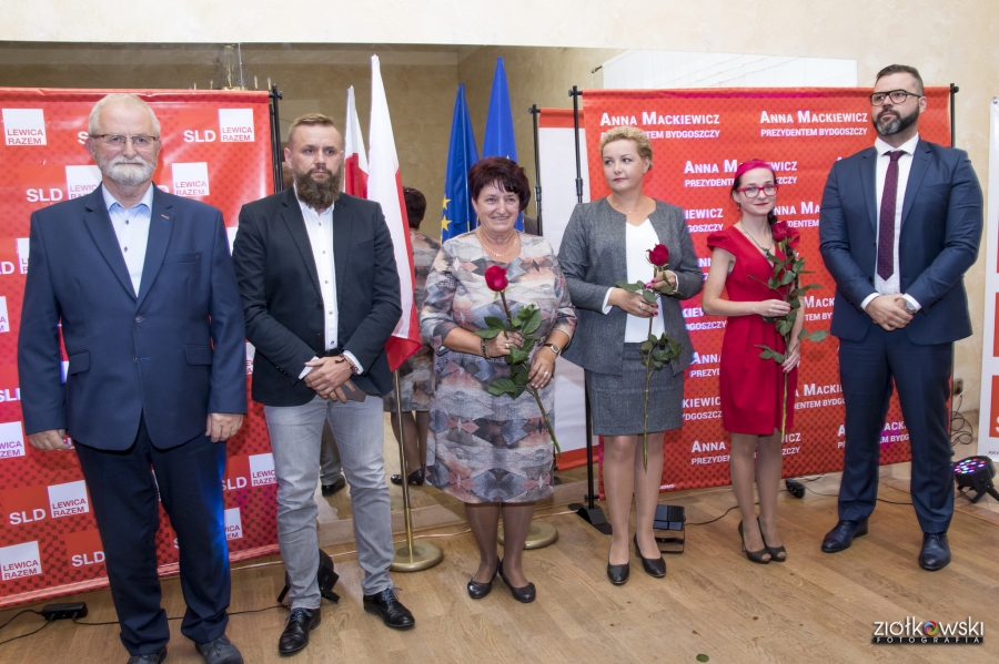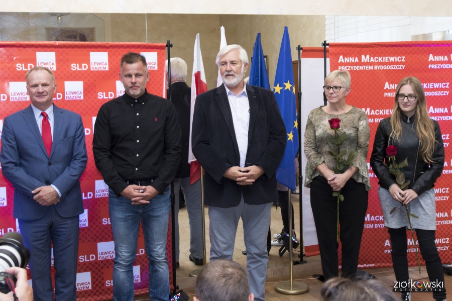 24 września 2018 r. odbyła się inauguracja kampanii samorządowej KKW SLD Lewica Razem w Bydgoszczy. Anna Mackiewicz, która kandyduje na urząd Prezydenta Bydgoszczy, zaprezentowała główne punkty swojego programu. Wydarzenie poprowadził duet Ania Niewiadomska i Tomasz Puławski, którzy przedstawili kandydatki i kandydatów do Rady Miasta Bydgoszczy oraz Sejmiku Województwa Kujawsko-Pomorskiego. Lider listy do Sejmiku Jan Szopiński dokładnie wyłuszczył, dlaczego warto głosować na listę KKW SLD Lewica Razem, a szef patii w mieście i województwie Ireneusz Nitkiewicz przedstawił ramy programu wyborczego lewicy. Na listach znalazły się osoby reprezentujące różne środowiska: społecznicy, szefowie rad osiedli, pracodawcy, wykładowcy akademiccy, przedsiębiorcy, osoby walczące o prawa osób niepełnosprawnych, artyści, nauczyciele, studenci i uczniowie. Fot. Piotr Ziółkowski